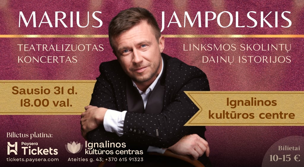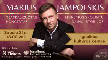 🎭 MARIAUS JAMPOLSKIO teatralizuotas koncertas “LINKSMOS SKOLINTŲ DAINŲ ISTORIJOS“ Ignalinoje!