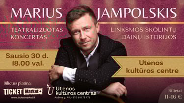 🎭 MARIAUS JAMPOLSKIO teatralizuotas koncertas “LINKSMOS SKOLINTŲ DAINŲ ISTORIJOS“ Utenoje!