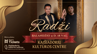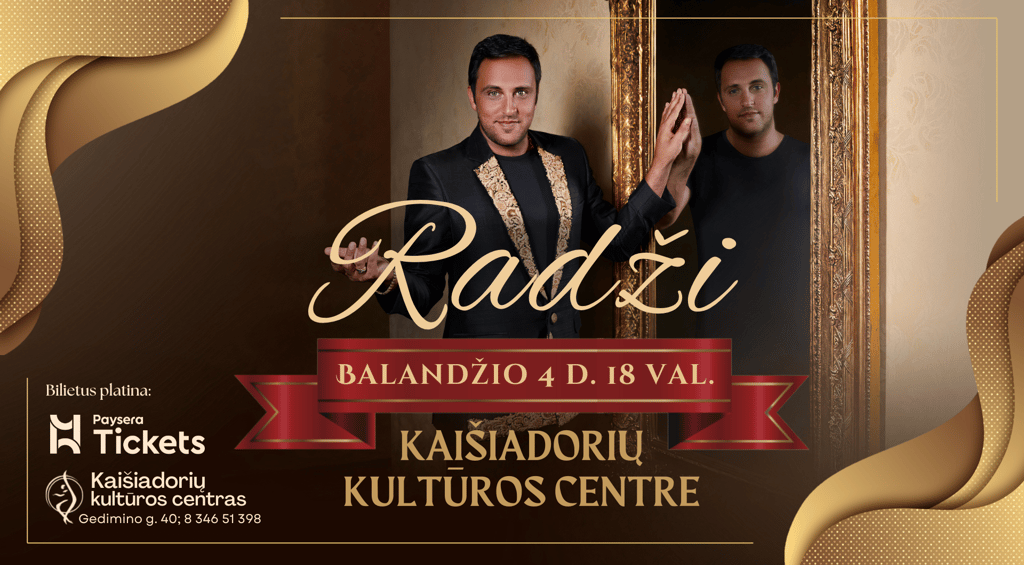 🎟 Bilietus platina Kaišiadorių kultūros centro kasa (Gedimino g. 40; 8 346 51 398; I-V 16.00–18.00) bei Paysera Tickets https://tickets.paysera.com/lt/event/muzikinis-pasimatymas-su-radzi-kaisiadoryse. Bilieto kaina 10-12€ (vaikams iki 3m nemokamai). Renginio dieną bilietai brangs!