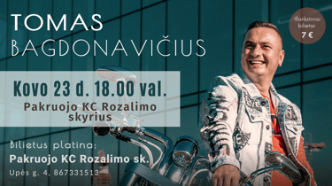 🗓 Kovo 23 d., ketvirtadienį, 18.00 val. kylanti žvaigždė, nuoširdusis dainininkas Tomas Bagdonavičius atvyksta į Pakruojo KC Rozalimo skyrių!