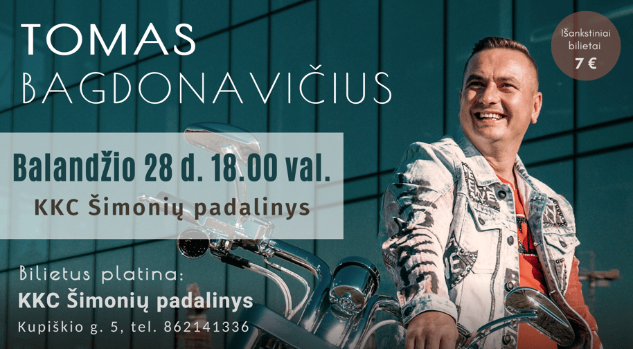 🗓 Balandžio 28 d., penktadienį, 18.00 val. kylanti žvaigždė, nuoširdusis dainininkas Tomas Bagdonavičius atvyksta į KKC Šimonių padalinį!