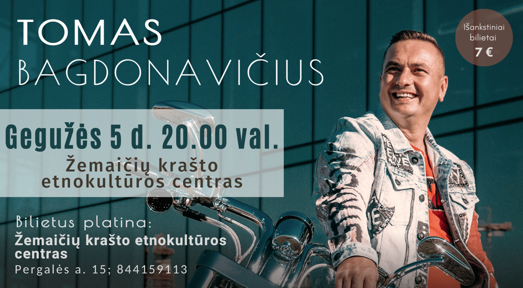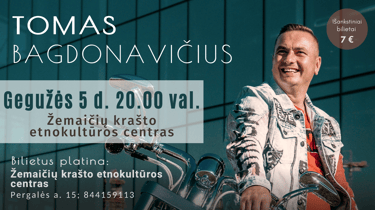🗓 Gegužės 5 d., penktadienį, 20.00 val. kylanti žvaigždė, nuoširdusis dainininkas Tomas Bagdonavičius atvyksta į Žemaičių krašto etnokultūros centrą!